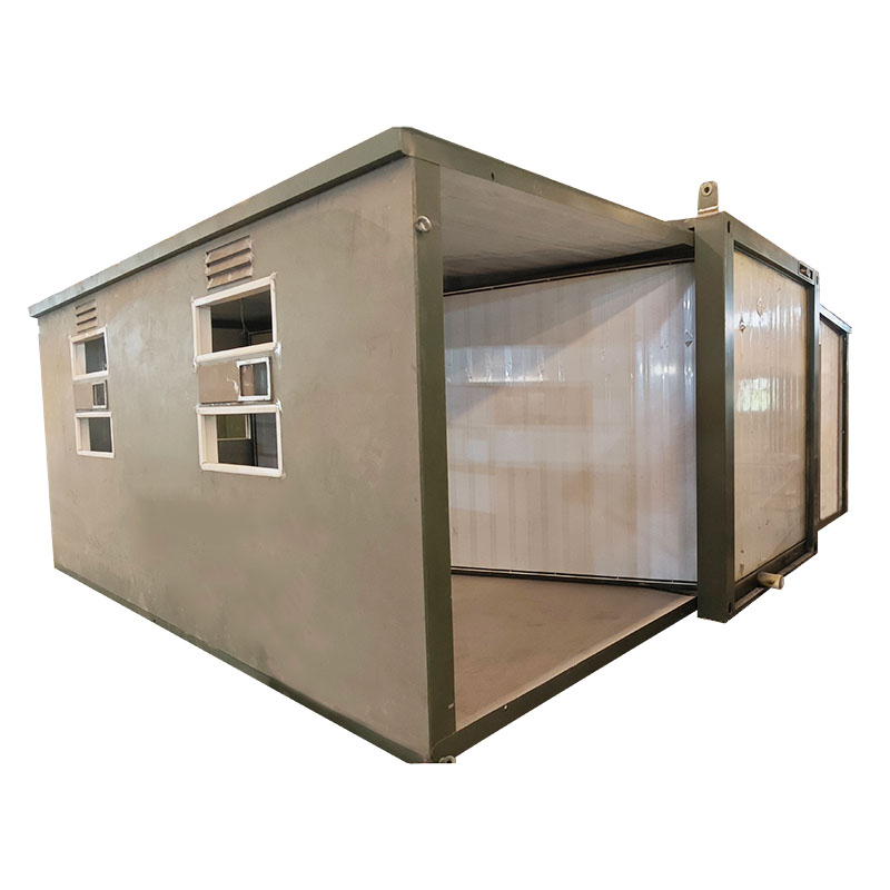 Den expanderbara vikningsstrukturen gör dess utseende och rumsliga layout unik. Den utökade vikningsstrukturen ökar det tillgängliga utrymmet inne i huset, vilket skapar ett större bostadsutrymme. Den kan snabbt monteras och demonteras, vilket gör den lätt att flytta till olika platser. Oavsett om det är utomhusäventyr, camping eller hemräddning, kan det expanderbara hopfällbara containerhuset erbjuda bekväma boendelösningar.